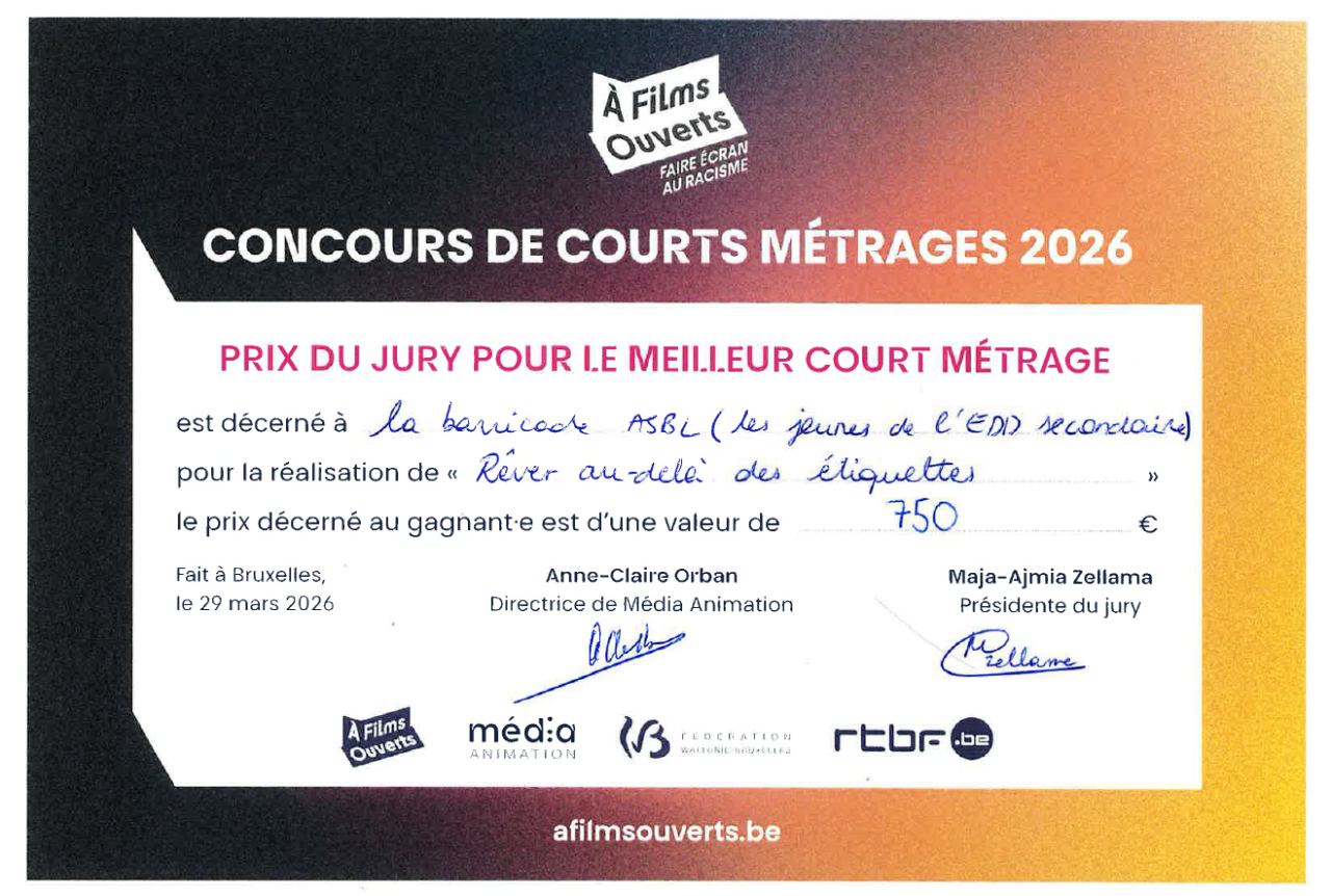 | Court métrage | Rêver au-delà des étiquettes de La Barricade asbl avec les jeunes de l’EDD secondaire. |